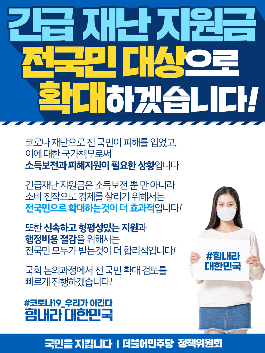 전국민 재난지원금으로 시행 될 시 1인당 25~30만원정도가 지급 될 전망이며, 따라서 2021년 제 2차 추경은 수십조에 달할 것이라 예상됩니다. 5차 재난지원금 신청 전국민 위로지원금 5차 재난지원금 대상 5차지원금 신청 홈페이지 5차 재난지원금 지급 시기 날짜 5차 재난지원금 소상공인 기초수급자 무직자 주부 프리랜서 5차 재난지원. 지원금의 총규모는 9.3조원이며, 긴급 피해지원 5.6조원, 방역강화 0.8조원, 맞춤형 지원 패키지 2.9조원으로 책정되었습니다. 지난 2월 19일 문재인 대통령은 간담회에서 전 국민 재난지원금 지급 제안에 대해 코로나에서 벗어날 상황이 되면 국민 위로, 국민 사기 진작용 지원금 지급을 검토할 수 있다라고 밝힌 바 있다. 전국민 지급 혹은 선별적 지급에 대한 논의가 펼쳐지고 있으며, 자세한 사항을 확인해보세요.